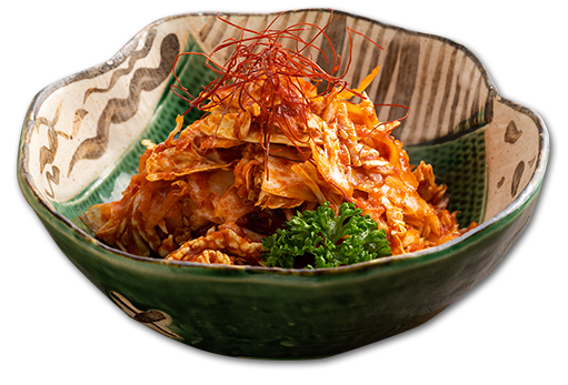 当店オリジナルのレシピを用いてご用意しており、国産の白菜に、4種類のブレンド唐辛子や香味野菜、果物をたっぷりと使用することで、辛さの奥にほのかな甘みを感じられる味わいに仕上げています。